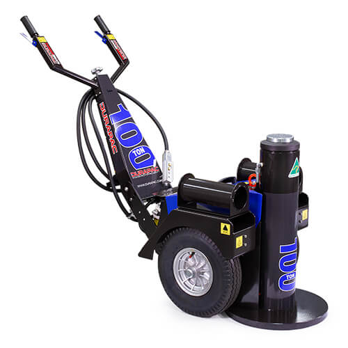 The SDN jack is an ergonomically designed portable jacking system that is easily wheeled around a job site. This unit is designed to lift heavy mining vehicles. It can be used on any hard surface (maintenance bays & workshops) and is easily transported by ute to site.